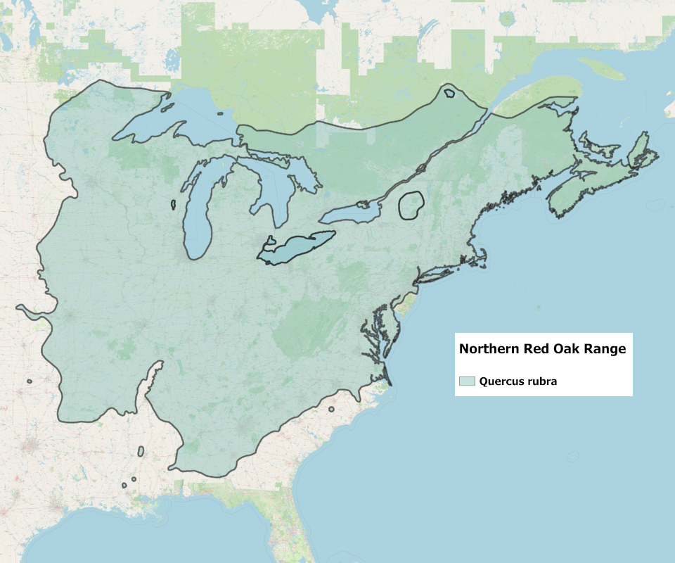 Figure 1. Current range of northern red oak (Quercus rubra).